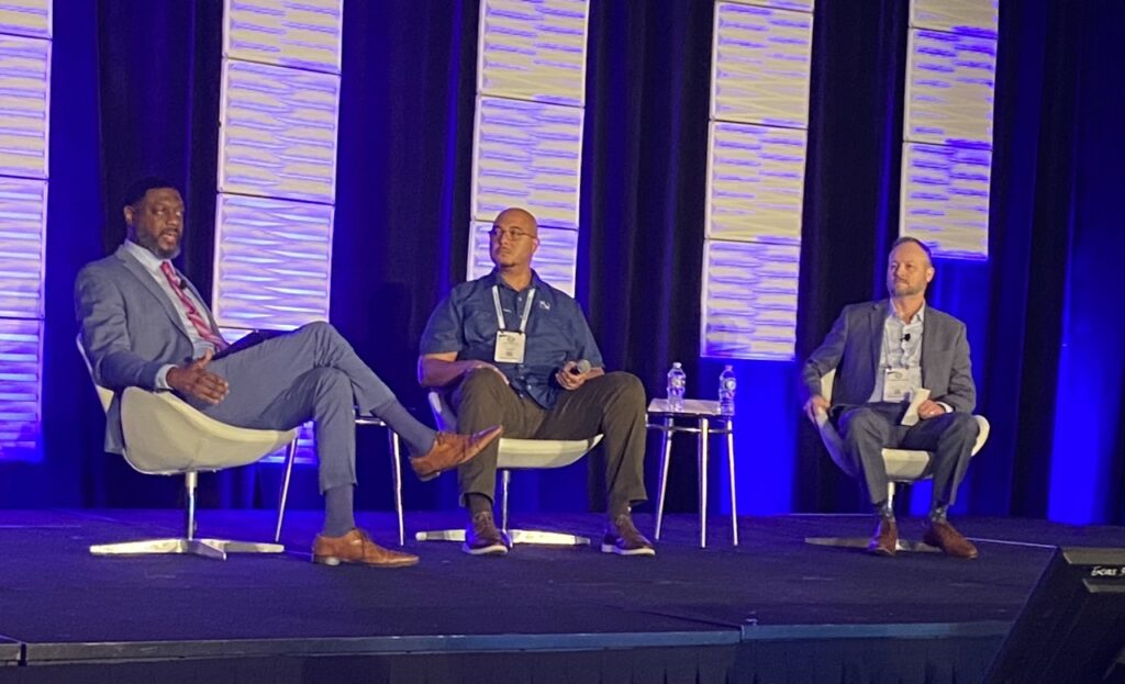 ILA participants at the South Atlantic and Gulf Coast District were educated on definition and benefits of an ILA Money Purchase Plans. Torin Ragin (left) serves as moderator for this panel, which included Frank McKenney (center), Managing Partner, McKinney Capital Management; and Christopher McDonough, Chief Investment Officer at Investment Performance Services.(IPS).